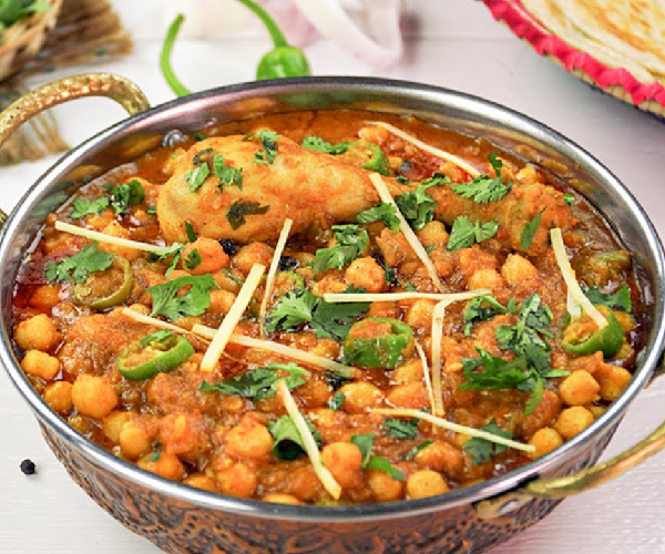 Boneless Chicken cooked with Chick Peas in Curry Sauce